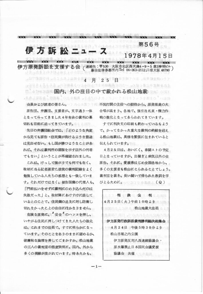 伊方訴訟ニュース 第56号〜60号 (1978/4-1978/8月)をアップします。