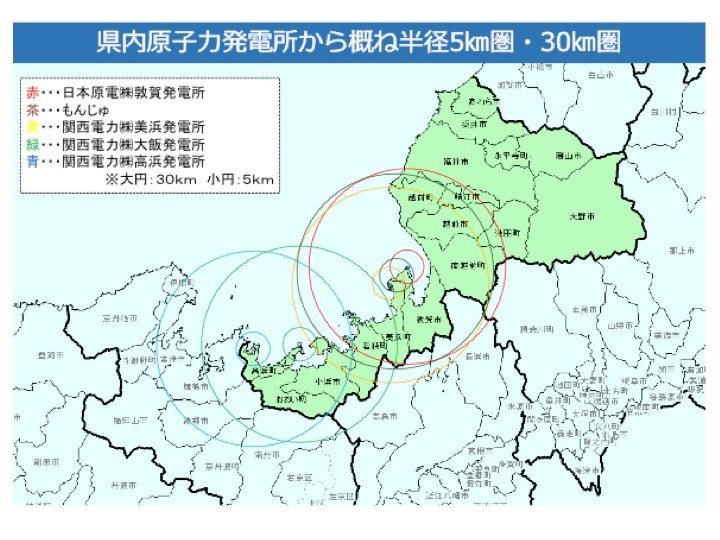 敦賀市・美浜町(嶺南東部):日本原電敦賀発電所、もんじゅ、関電美浜発電所大井町・高浜町(嶺南西部):関電大飯、高浜発電所